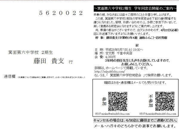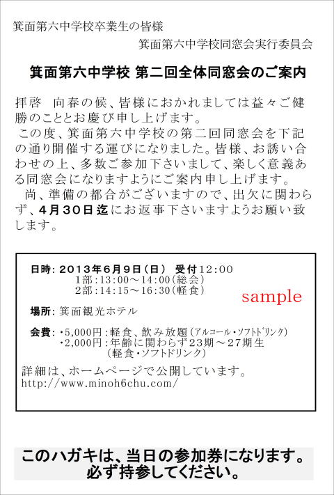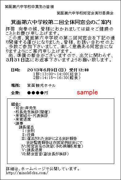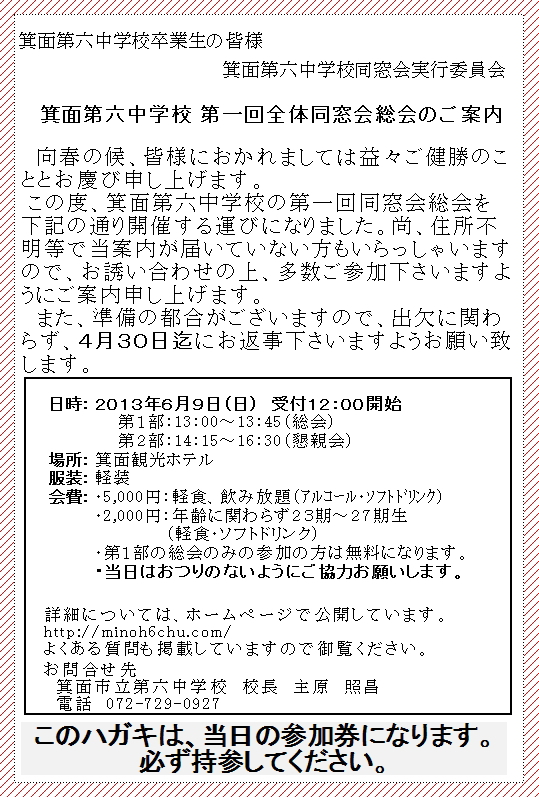 ・☆箕面第六中学校同窓会実行運営委員会☆vol.001