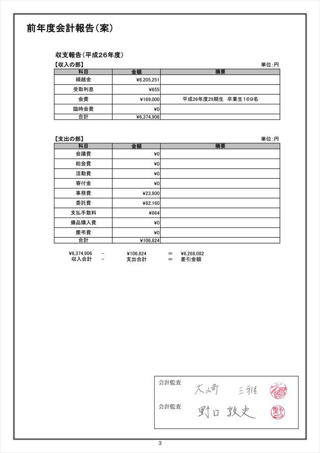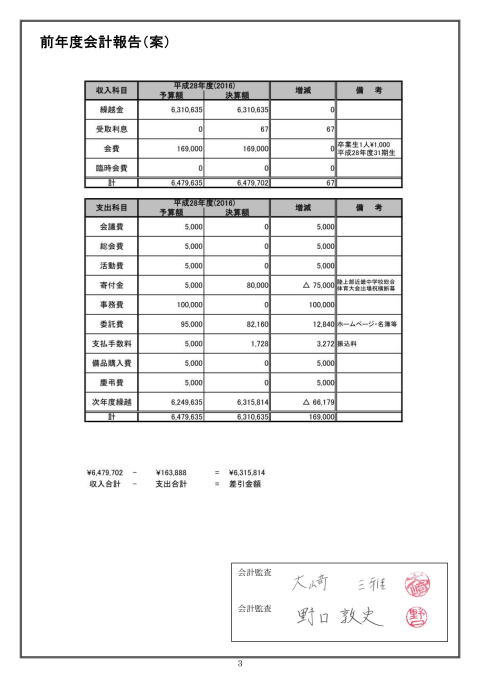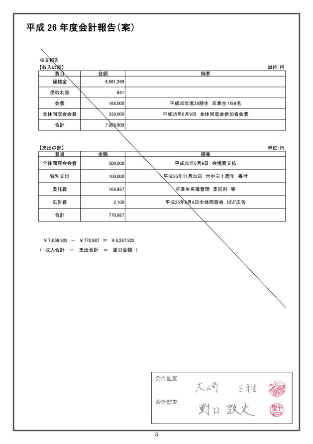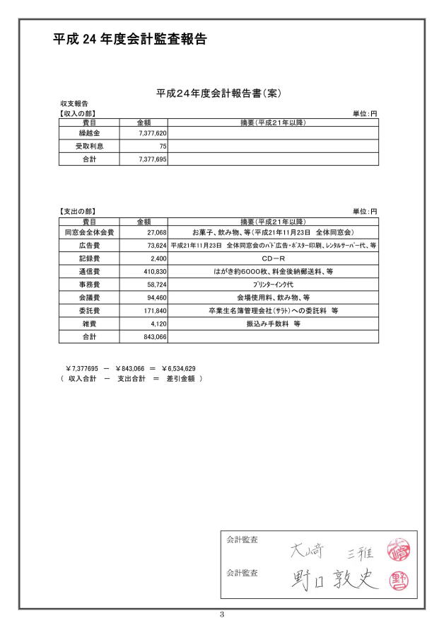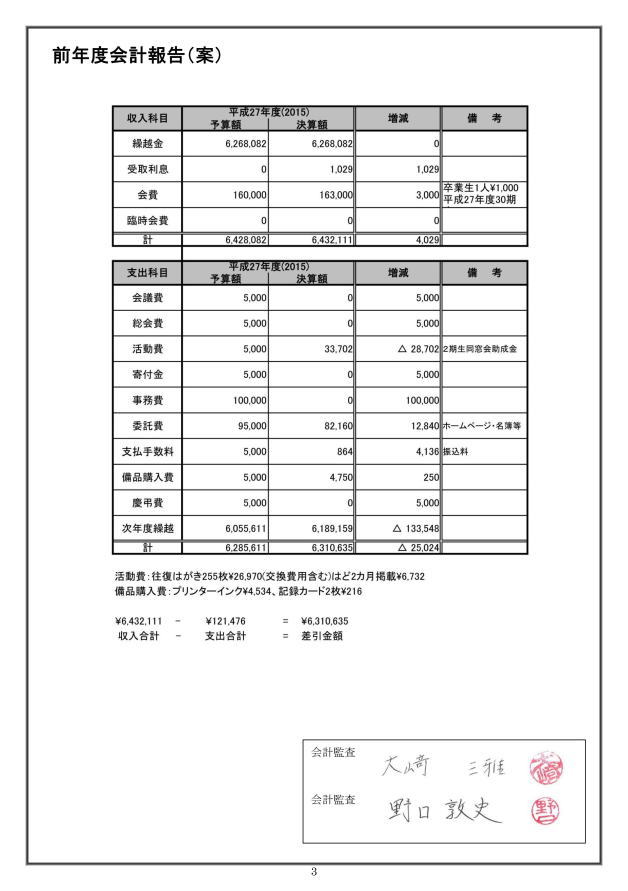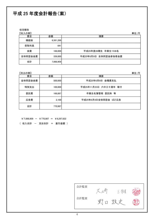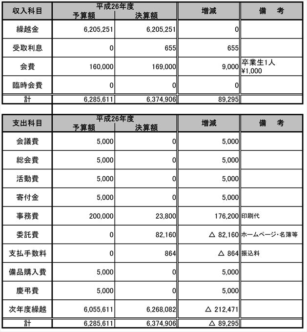 いただいた寄付金は、同窓会運営の援助、母校の備品購入の補助等に利用させていただきます。