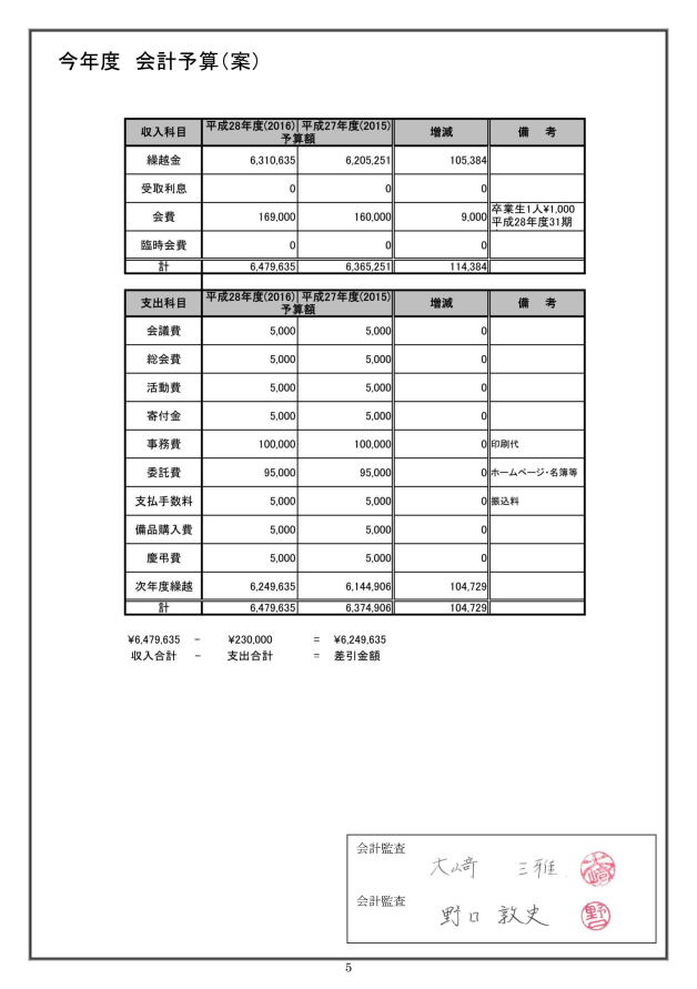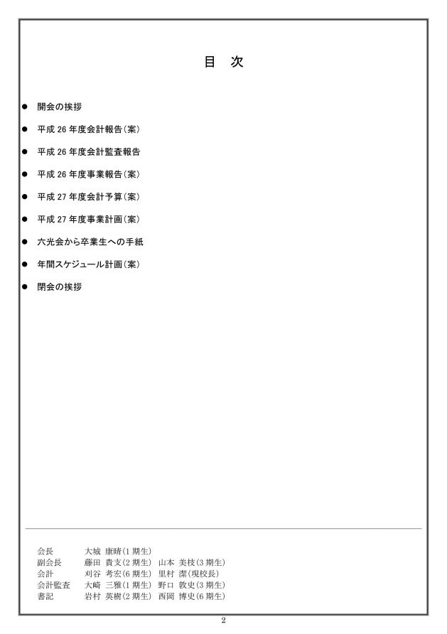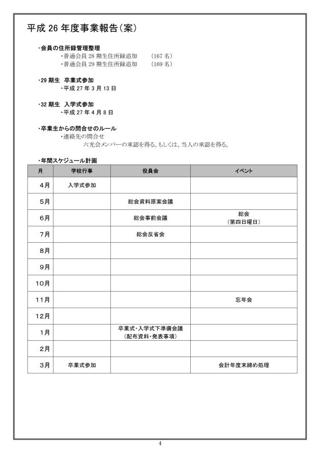 総会資料2019年5月25日(土)10:00 第19回 六光会 役員会 校長室隣