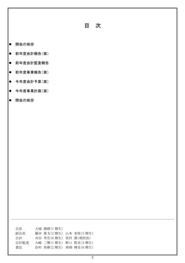 総会資料2022年6月26日(日)10:00 第10回 六光会 校長室隣