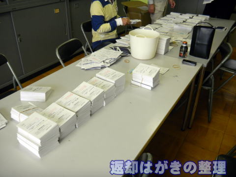 ・住所不明はがきの整理(第二回入力ミスの確認)・返却はがきをサラトヘ郵送準備