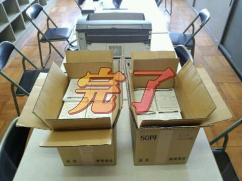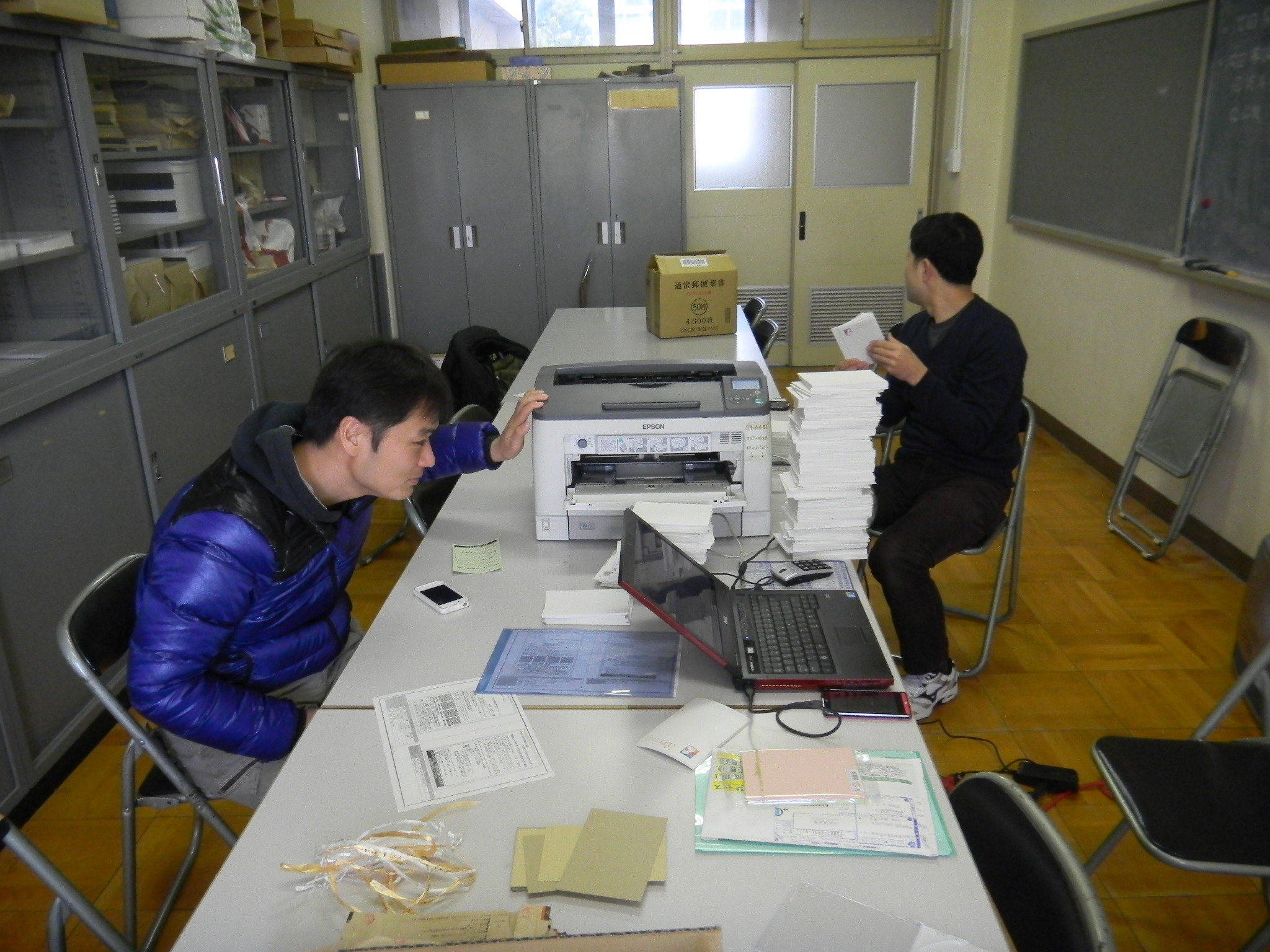 ・サラトから印字済のハガキ受取・シール貼り 印字済の4615人分