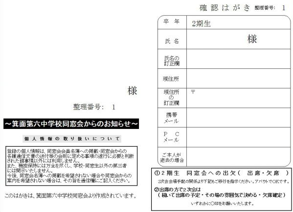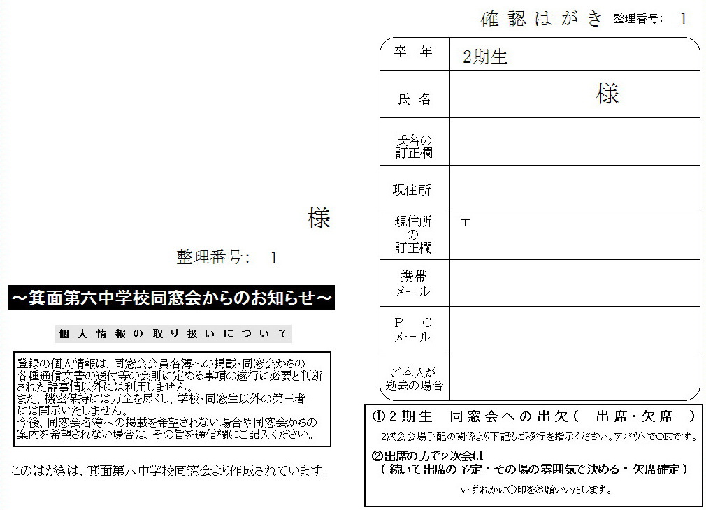 ・みなさんの力で少しでも住所録を完成させたいと思いますので、卒業生のお友達を誘っての多数の参加お待ちしています。